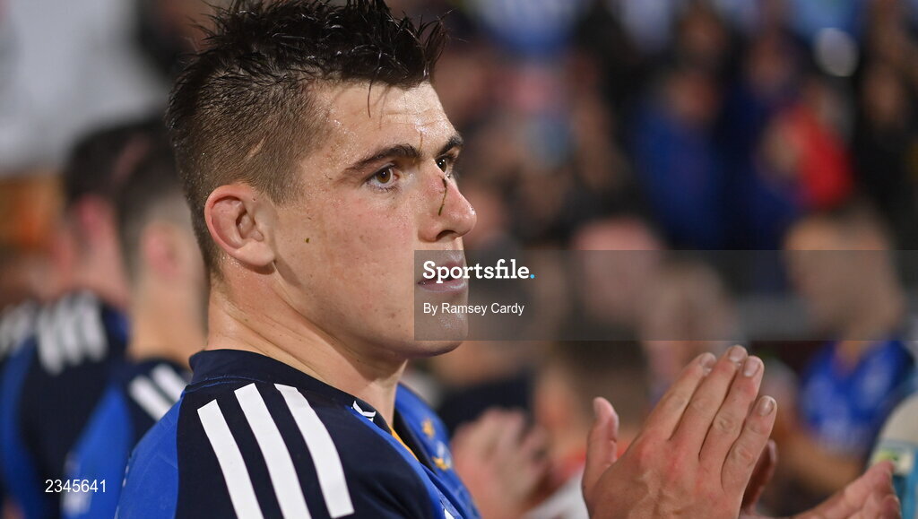 30 September 2022; Dan Sheehan of Leinster after the United Rugby Championship match between Ulster and Leinster at Kingspan Stadium in Belfast. Photo by Ramsey Cardy/Sportsfile