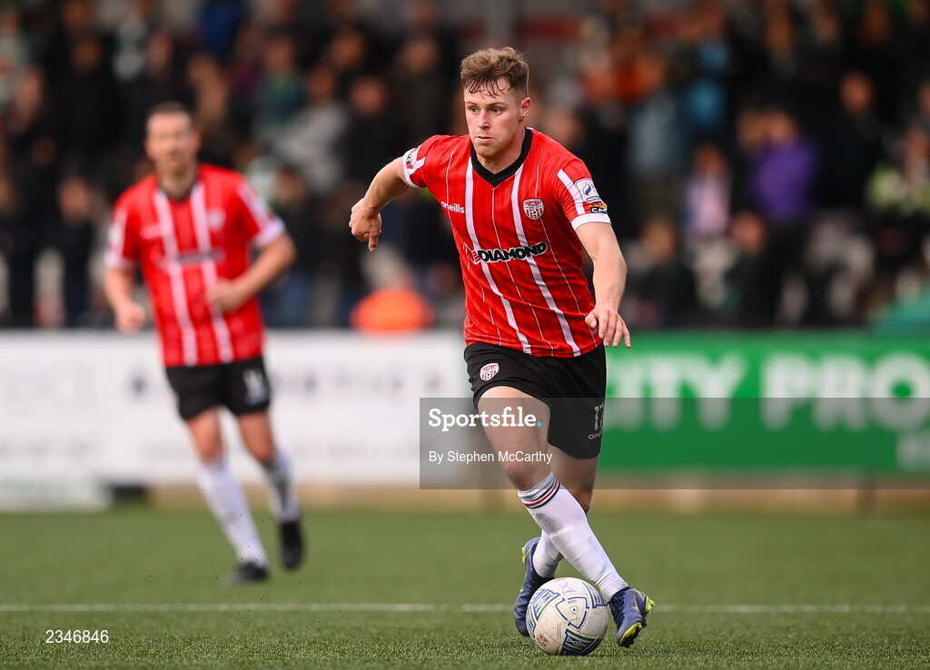 18 September 2022; Cameron Dummigan of Derry City during the Extra.ie FAI Cup Quarter-Final match between Derry City and Shamrock Rovers at The Ryan McBride Brandywell Stadium in Derry. Photo by Stephen McCarthy/Sportsfile