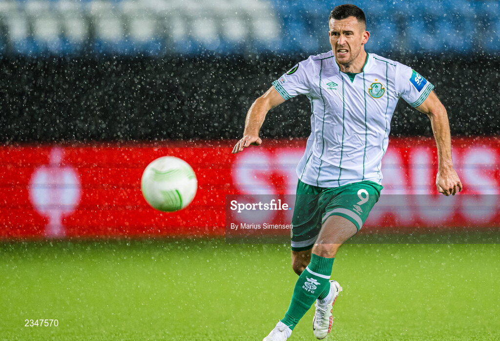 6 October 2022; Aaron Greene of Shamrock Rovers during the UEFA Europa Conference League group F match between Molde and Shamrock Rovers at Aker Stadion in Molde, Norway. Photo by Marius Simensen/Sportsfile