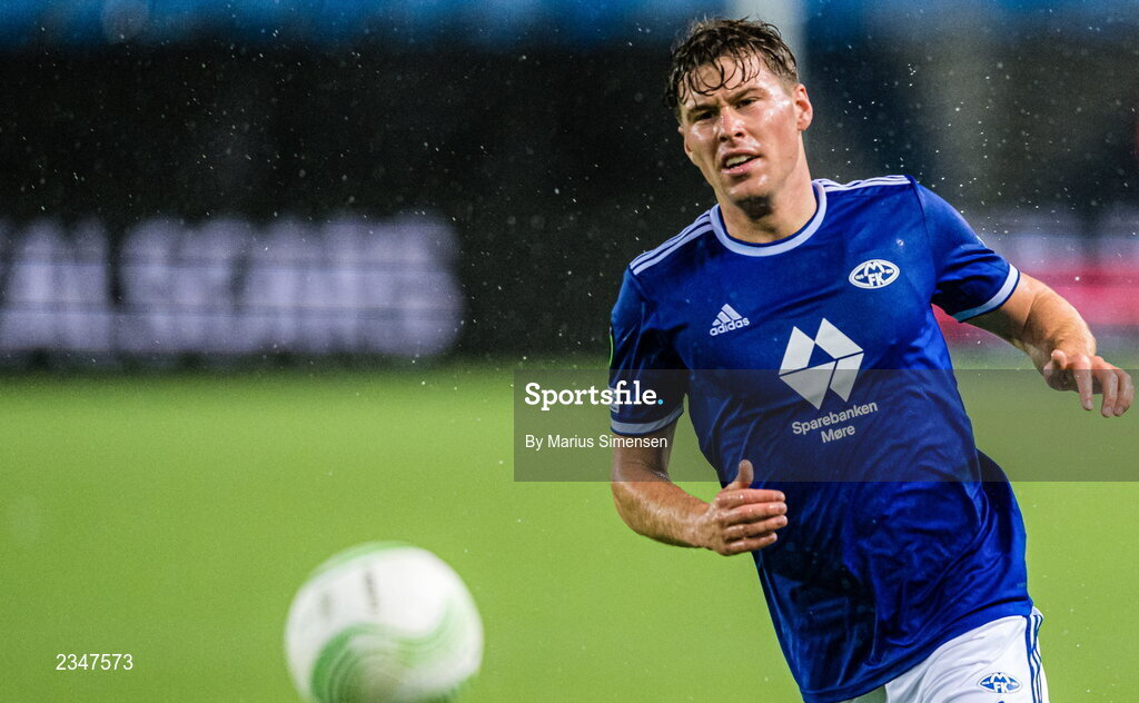 6 October 2022; Emil Breivik of Molde during the UEFA Europa Conference League group F match between Molde and Shamrock Rovers at Aker Stadion in Molde, Norway. Photo by Marius Simensen/Sportsfile