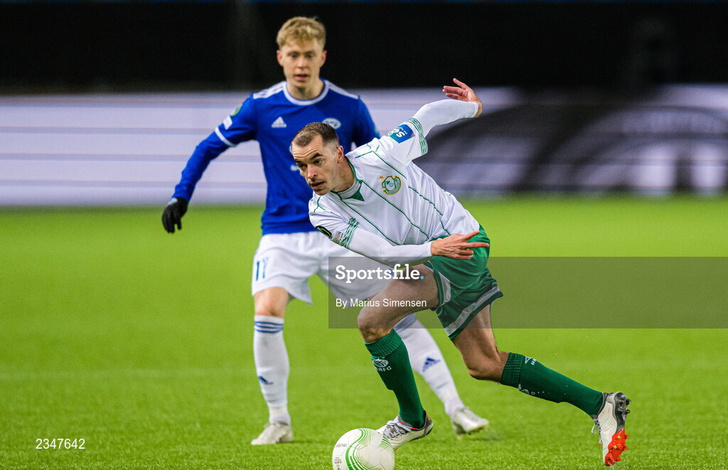 6 October 2022; Sean Kavanagh of Shamrock Rovers during the UEFA Europa Conference League group F match between Molde and Shamrock Rovers at Aker Stadion in Molde, Norway. Photo by Marius Simensen/Sportsfile