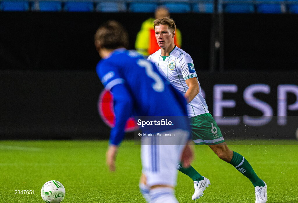 6 October 2022; Dan Cleary of Shamrock Rovers during the UEFA Europa Conference League group F match between Molde and Shamrock Rovers at Aker Stadion in Molde, Norway. Photo by Marius Simensen/Sportsfile