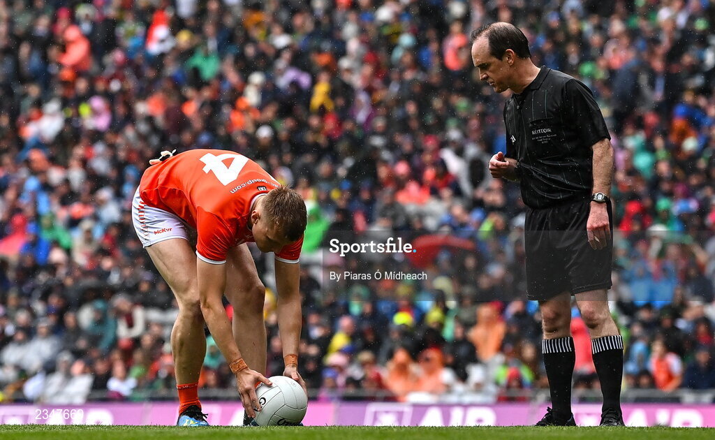 26 June 2022; Rian O'Neill of Armagh prepares to take a penalty in the penalty shoot-out of the GAA Football All-Ireland Senior Championship Quarter-Final match between Armagh and Galway at Croke Park, Dublin. Photo by Piaras Ó Mídheach/Sportsfile