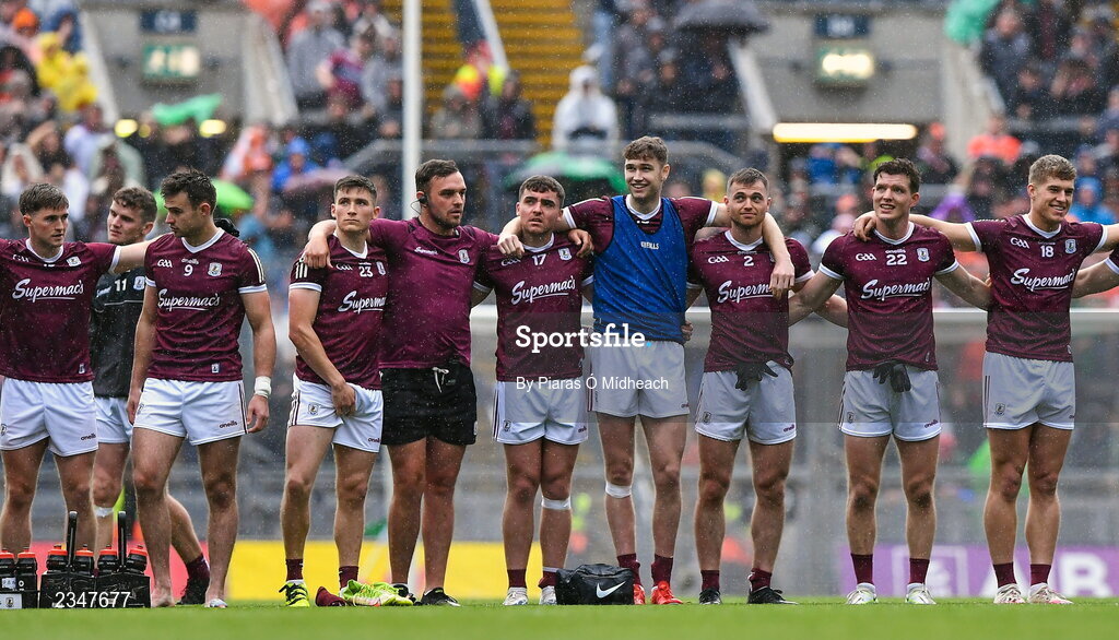 26 June 2022; Galway players during the penalty shoot-out of the GAA Football All-Ireland Senior Championship Quarter-Final match between Armagh and Galway at Croke Park, Dublin. Photo by Piaras Ó Mídheach/Sportsfile