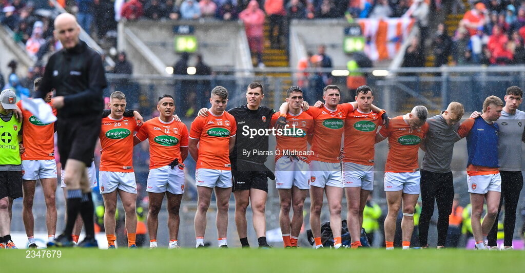26 June 2022; Armagh players during the penalty shoot-out of the GAA Football All-Ireland Senior Championship Quarter-Final match between Armagh and Galway at Croke Park, Dublin. Photo by Piaras Ó Mídheach/Sportsfile
