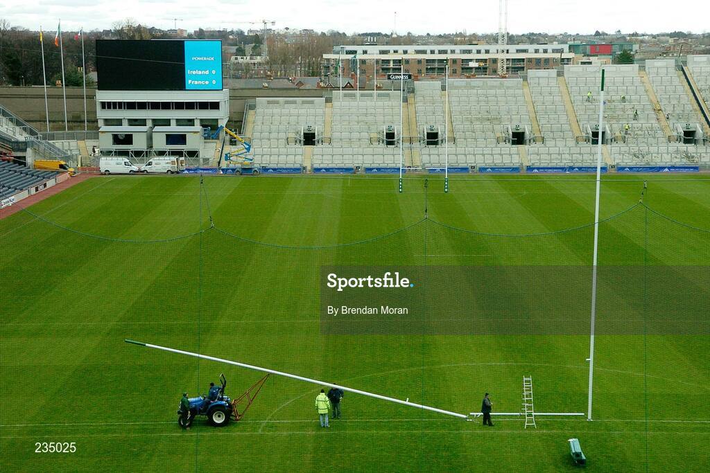 7 February 2007; The new rugby goalposts are erected in Croke Park ahead of the first rugby international to be played at the stadium on Sunday next when Ireland meet France in the RBS Six Nations Rugby Championship. Croke Park, Dublin. Picture credit: Brendan Moran / SPORTSFILE