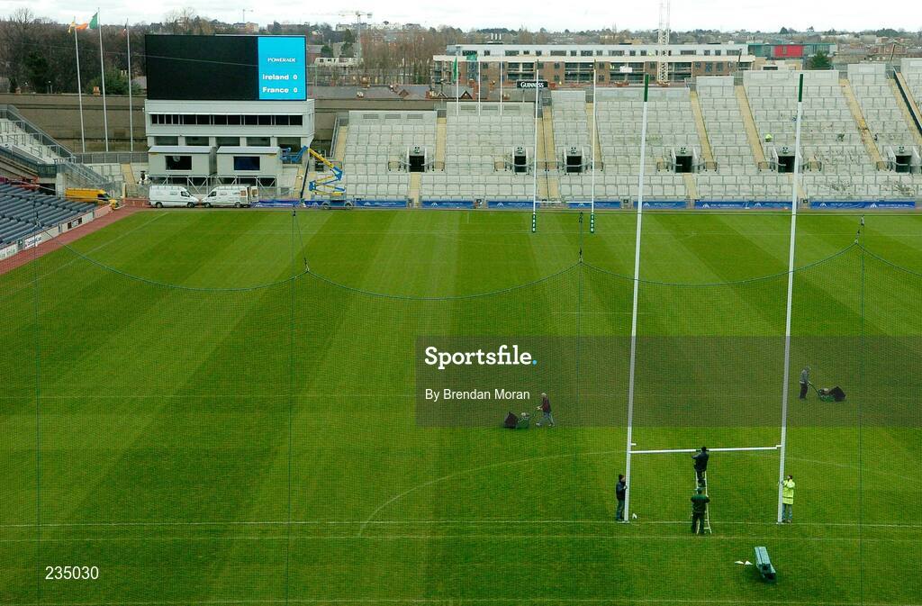 7 February 2007; The new rugby goalposts are erected in Croke Park ahead of the first rugby international to be played at the stadium on Sunday next when Ireland meet France in the RBS Six Nations Rugby Championship. Croke Park, Dublin. Picture credit: Brendan Moran / SPORTSFILE