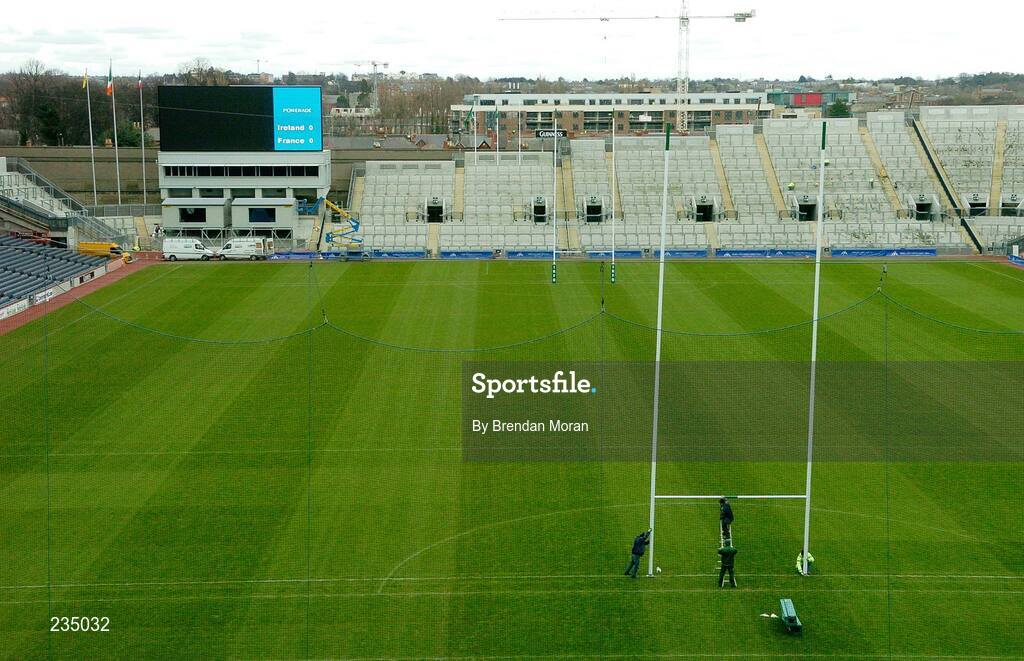 7 February 2007; The new rugby goalposts are erected in Croke Park ahead of the first rugby international to be played at the stadium on Sunday next when Ireland meet France in the RBS Six Nations Rugby Championship. Croke Park, Dublin. Picture credit: Brendan Moran / SPORTSFILE