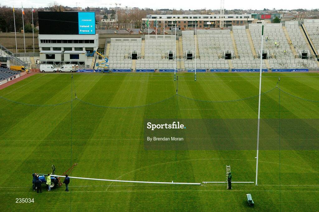 7 February 2007; The new rugby goalposts are erected in Croke Park ahead of the first rugby international to be played at the stadium on Sunday next when Ireland meet France in the RBS Six Nations Rugby Championship. Croke Park, Dublin. Picture credit: Brendan Moran / SPORTSFILE