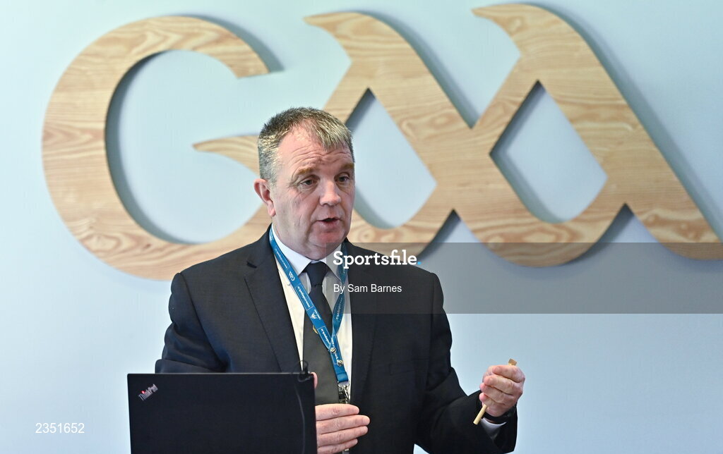 13 October 2022; National Match Officials Manager, Donal Smyth speaking during the GAA Referees Respect Day at Croke Park in Dublin. Photo by Sam Barnes/Sportsfile