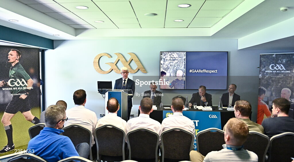 13 October 2022; Referee Development Committee Chairperson, Sean Martin, speaking during the GAA Referees Respect Day at Croke Park in Dublin. Photo by Sam Barnes/Sportsfile