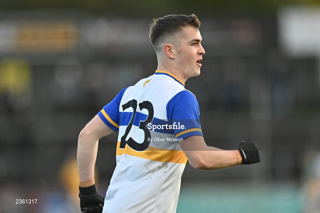 30 October 2022; Ruairi Canavan of Errigal Ciarán celebrates after scoring a point during the Tyrone County Senior Club Football Championship Final match between Errigal Ciarán and Carrickmore at O'Neills Healy Park in Omagh, Tyrone. Photo by Oliver McVeigh/Sportsfile