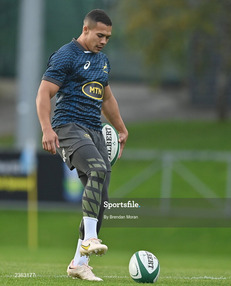 1 November 2022; Cheslin Kolbe during South Africa rugby squad training at UCD in Dublin. Photo by Brendan Moran/Sportsfile