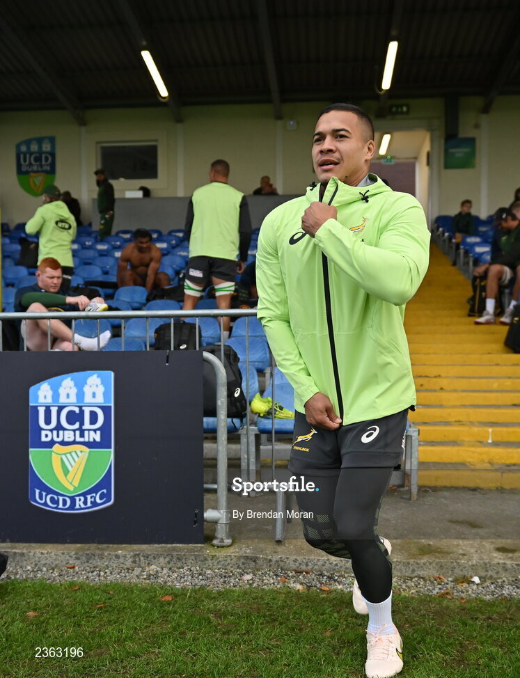 1 November 2022; Cheslin Kolbe arrives for South Africa rugby squad training at UCD in Dublin. Photo by Brendan Moran/Sportsfile