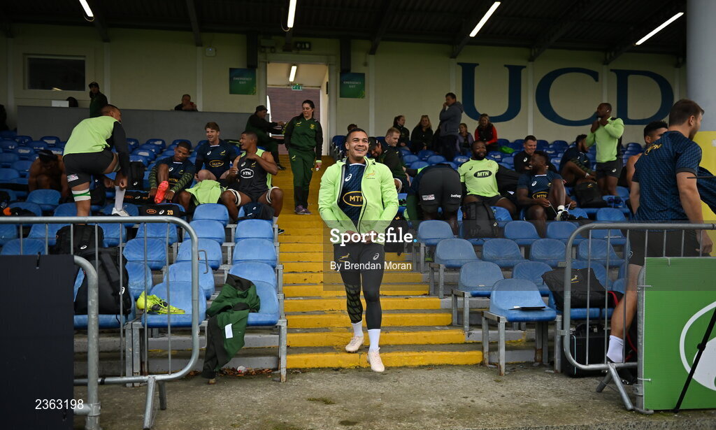 1 November 2022; Cheslin Kolbe arrives for South Africa rugby squad training at UCD in Dublin. Photo by Brendan Moran/Sportsfile
