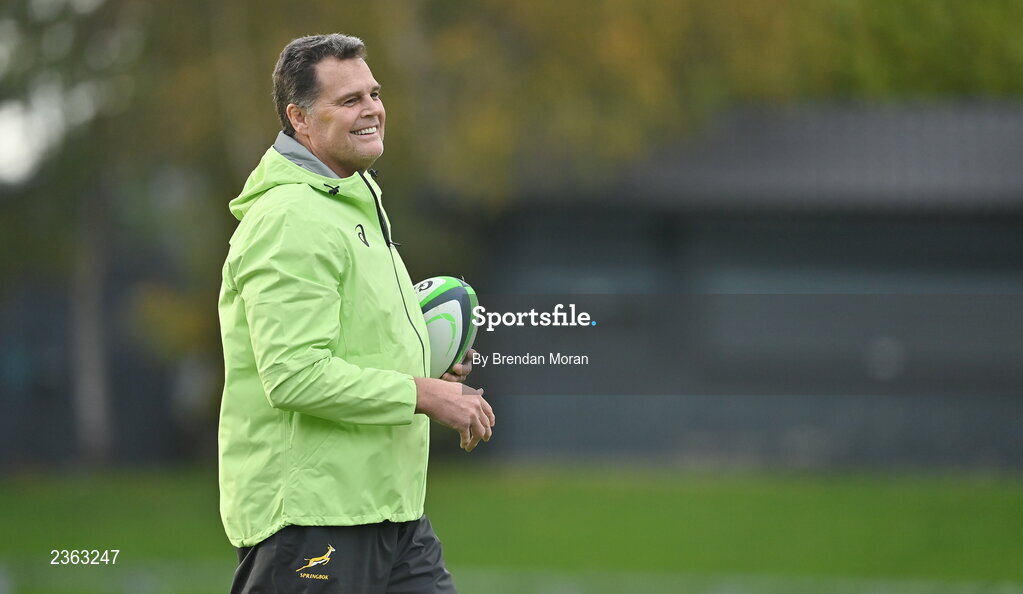 1 November 2022; South Africa director of rugby Rassie Erasmus during South Africa rugby squad training at UCD in Dublin. Photo by Brendan Moran/Sportsfile