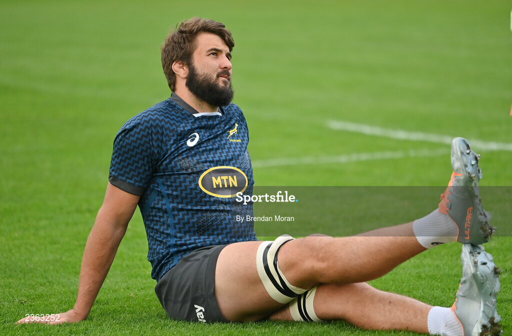 1 November 2022; Lood de Jager during South Africa rugby squad training at UCD in Dublin. Photo by Brendan Moran/Sportsfile