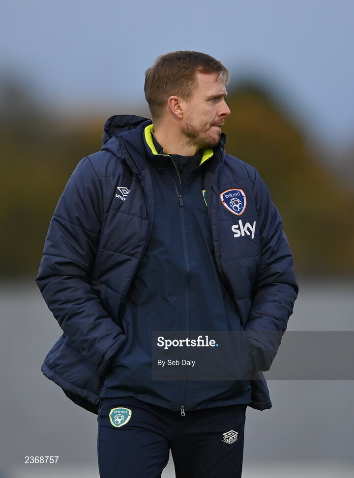 3 November 2022; Republic of Ireland manager Tom Elmes during the Women's U16 International Friendly match between Republic of Ireland and Switzerland at Whitehall Stadium in Dublin. Photo by Seb Daly/Sportsfile