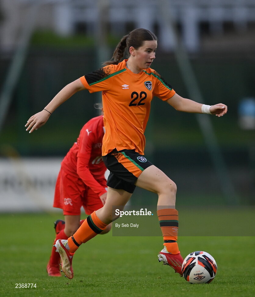3 November 2022; Rebecca Devereux of Republic of Ireland during the Women's U16 International Friendly match between Republic of Ireland and Switzerland at Whitehall Stadium in Dublin. Photo by Seb Daly/Sportsfile