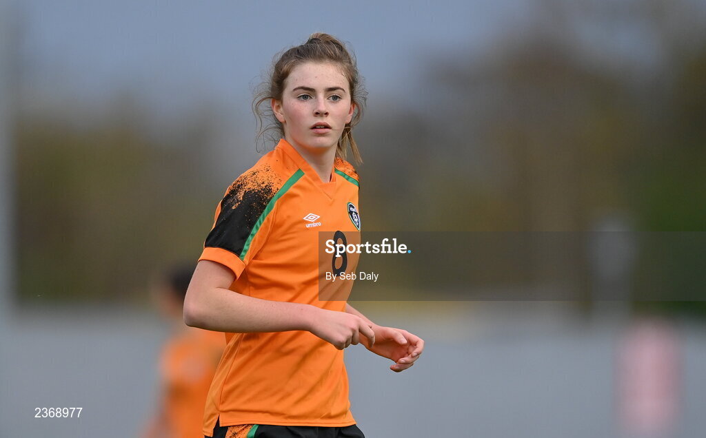 3 November 2022; Finley Newell of Republic of Ireland during the Women's U16 International Friendly match between Republic of Ireland and Switzerland at Whitehall Stadium in Dublin. Photo by Seb Daly/Sportsfile