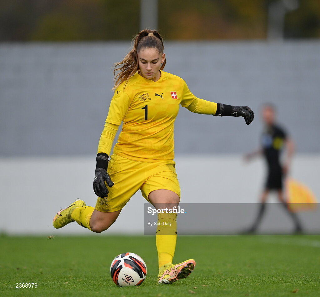 3 November 2022; Switzerland goalkeeper Lea Kramoviku during the Women's U16 International Friendly match between Republic of Ireland and Switzerland at Whitehall Stadium in Dublin. Photo by Seb Daly/Sportsfile