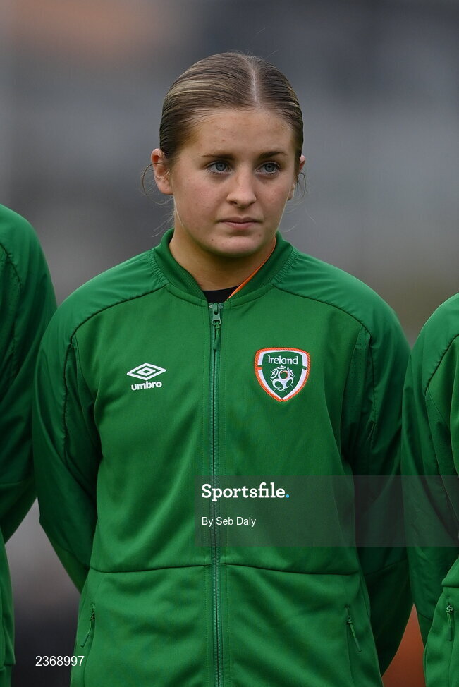 3 November 2022; Lucy O'Rourke of Republic of Ireland before the Women's U16 International Friendly match between Republic of Ireland and Switzerland at Whitehall Stadium in Dublin. Photo by Seb Daly/Sportsfile