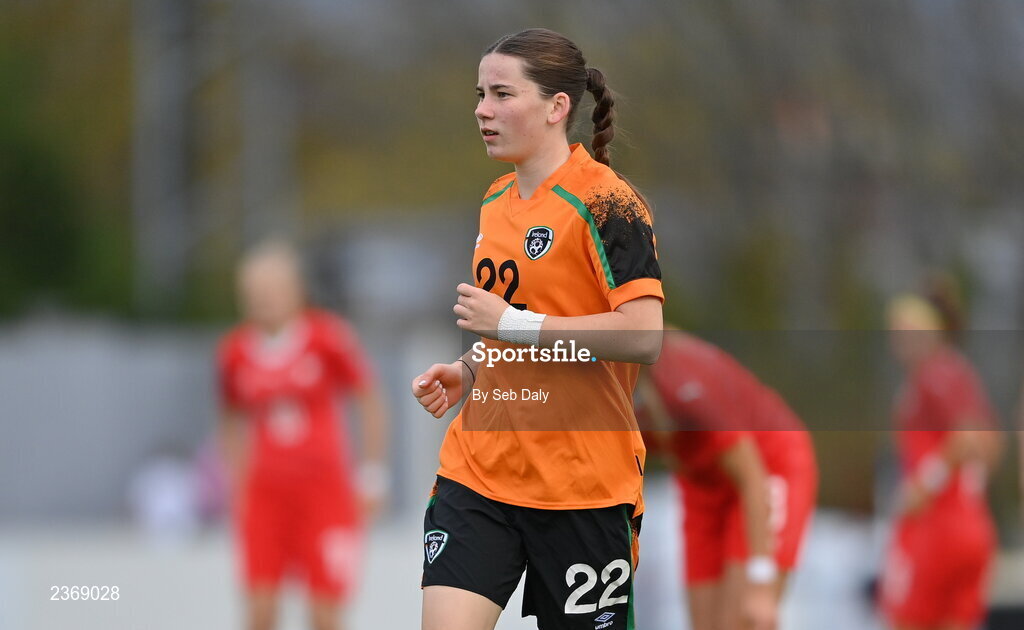 3 November 2022; Rebecca Devereux of Republic of Ireland during the Women's U16 International Friendly match between Republic of Ireland and Switzerland at Whitehall Stadium in Dublin. Photo by Seb Daly/Sportsfile