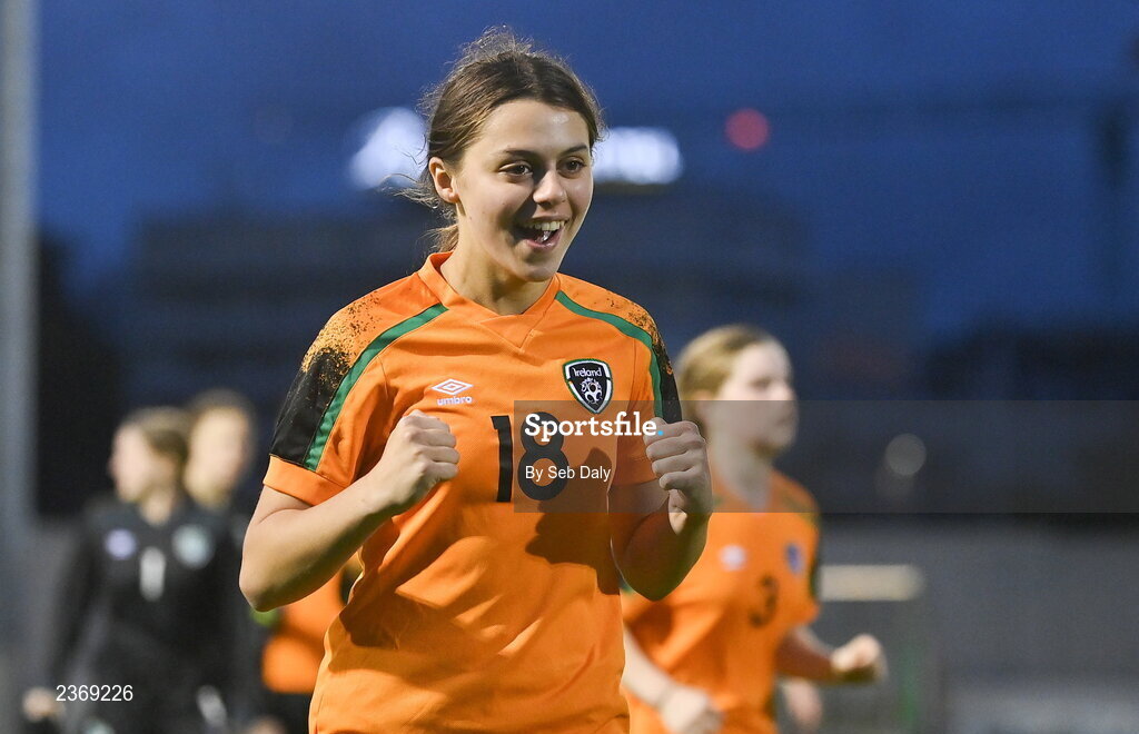 3 November 2022; Hannah O'Brien of Republic of Ireland after her side's victory in the Women's U16 International Friendly match between Republic of Ireland and Switzerland at Whitehall Stadium in Dublin. Photo by Seb Daly/Sportsfile