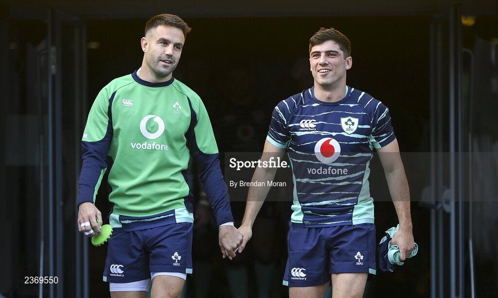 4 November 2022; Conor Murray, left, and Jimmy O'Brien walk onto the player's tunnel before the Ireland captain's run at the Aviva Stadium in Dublin. Photo by Brendan Moran/Sportsfile