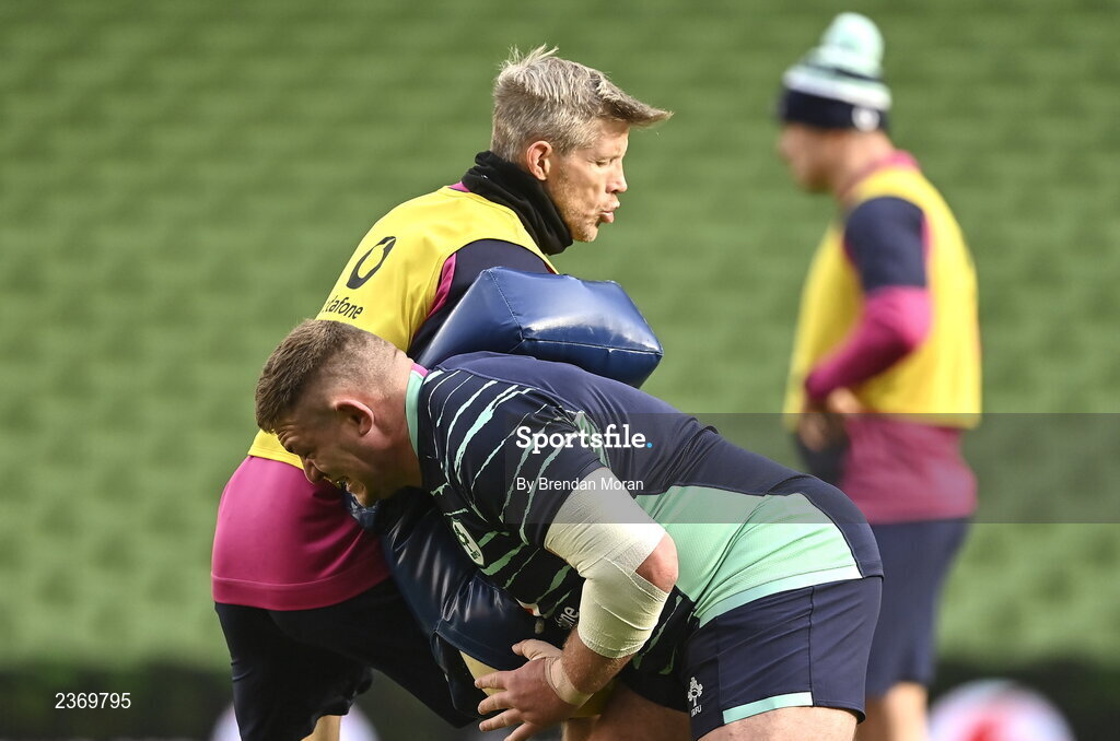 4 November 2022; Tadhg Furlong and defence coach Simon Easterby during the Ireland captain's run at the Aviva Stadium in Dublin. Photo by Brendan Moran/Sportsfile