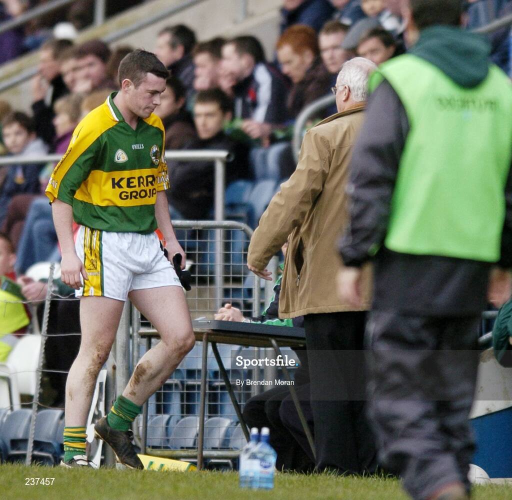 25 February 2007; Kerry's Ronan O Flatharta leaves the field after being shown a red card, after receiving a second yellow card, by referee Michael Hughes. Allianz National Football League, Division 1A, Round 3, Fermanagh v Kerry, Kingspan Breffni Park, Cavan. Picture Credit: Brendan Moran / SPORTSFILE