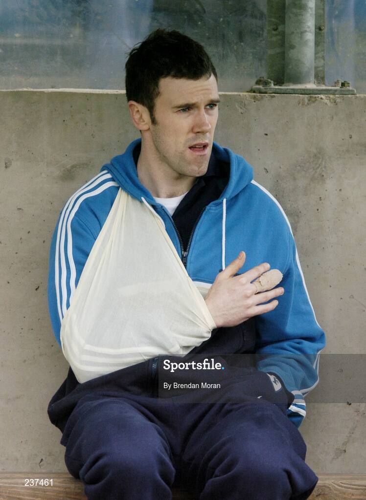 25 February 2007; Kerry's Daniel Bohane, who was going to make his debut before sustaining a broken finger during the pre-match warm-up, sits on the substitutes bench before the game. Allianz National Football League, Division 1A, Round 3, Fermanagh v Kerry, Kingspan Breffni Park, Cavan. Picture Credit: Brendan Moran / SPORTSFILE