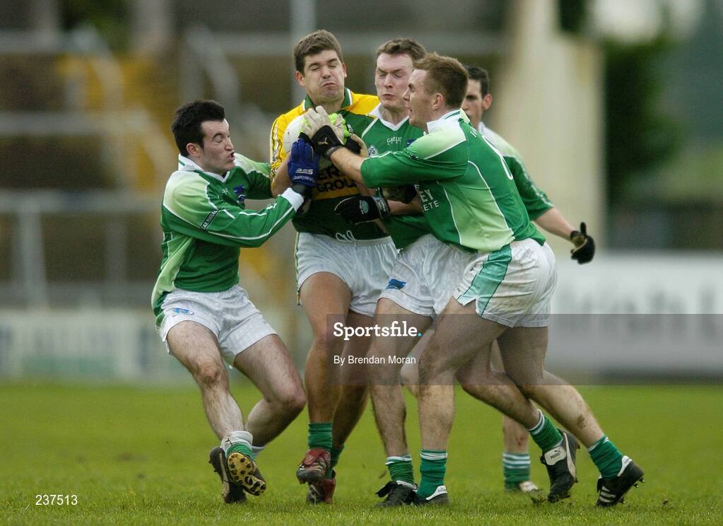 25 February 2007; Eamonn Fitzmaurice, Kerry, in action against, from left, Ciaran O'Reilly, James Sherry and Martin McGrath, Fermanagh. Allianz National Football League, Division 1A, Round 3, Fermanagh v Kerry, Kingspan Breffni Park, Cavan. Picture Credit: Brendan Moran / SPORTSFILE