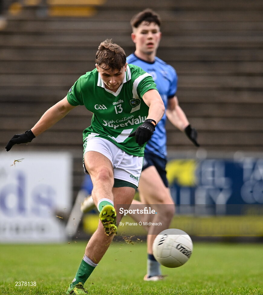 13 November 2022; Daniel Cox of Moycullen shoots to score his side's first goal during the AIB Connacht GAA Football Senior Club Championship Quarter-Final match between Moycullen and Westport at Hastings Insurance MacHale Park in Castlebar, Mayo. Photo by Piaras Ó Mídheach/Sportsfile