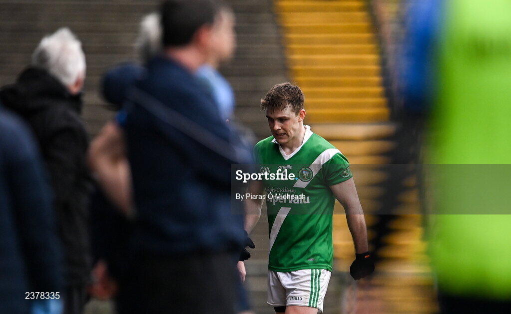 13 November 2022; David Wynne of Moycullen leaves the pitch after he was shown the red card by referee Paddy Neilan, not pictured, during the AIB Connacht GAA Football Senior Club Championship Quarter-Final match between Moycullen and Westport at Hastings Insurance MacHale Park in Castlebar, Mayo. Photo by Piaras Ó Mídheach/Sportsfile