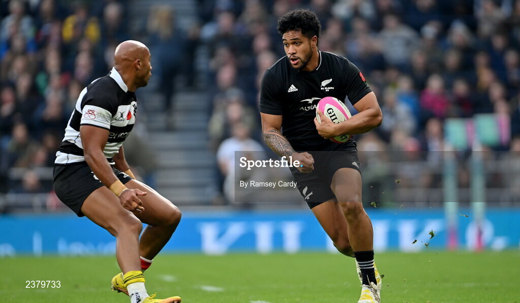 13 November 2022; Leicester Fainga'anuku of All Blacks XV during the Killik Cup match between Barbarians and All Blacks XV at Tottenham Hotspur Stadium in London, England. Photo by Ramsey Cardy/Sportsfile