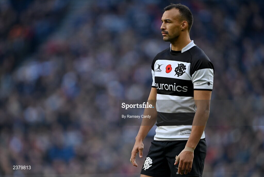 13 November 2022; Dillyn Leyds of Barbarians during the Killik Cup match between Barbarians and All Blacks XV at Tottenham Hotspur Stadium in London, England. Photo by Ramsey Cardy/Sportsfile