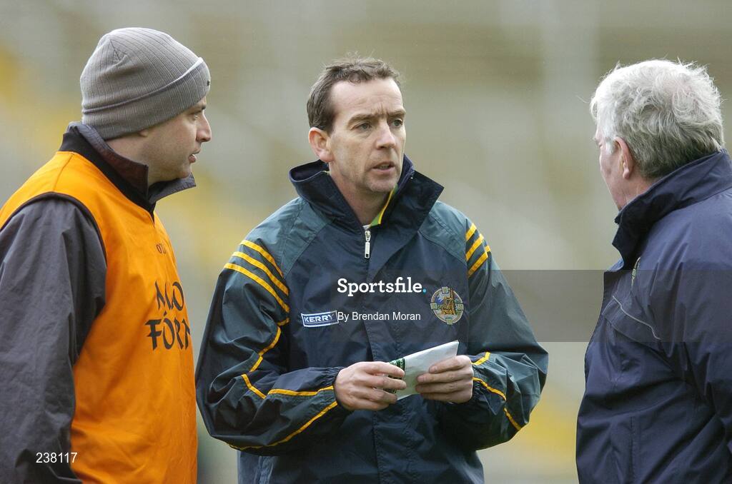 25 February 2007; Kerry manager Pat O'Shea in consultation with selectors Sean Geaney, left, and Dr. Dave Geaney. Allianz National Football League, Division 1A, Round 3, Fermanagh v Kerry, Kingspan Breffni Park, Cavan. Picture Credit: Brendan Moran / SPORTSFILE