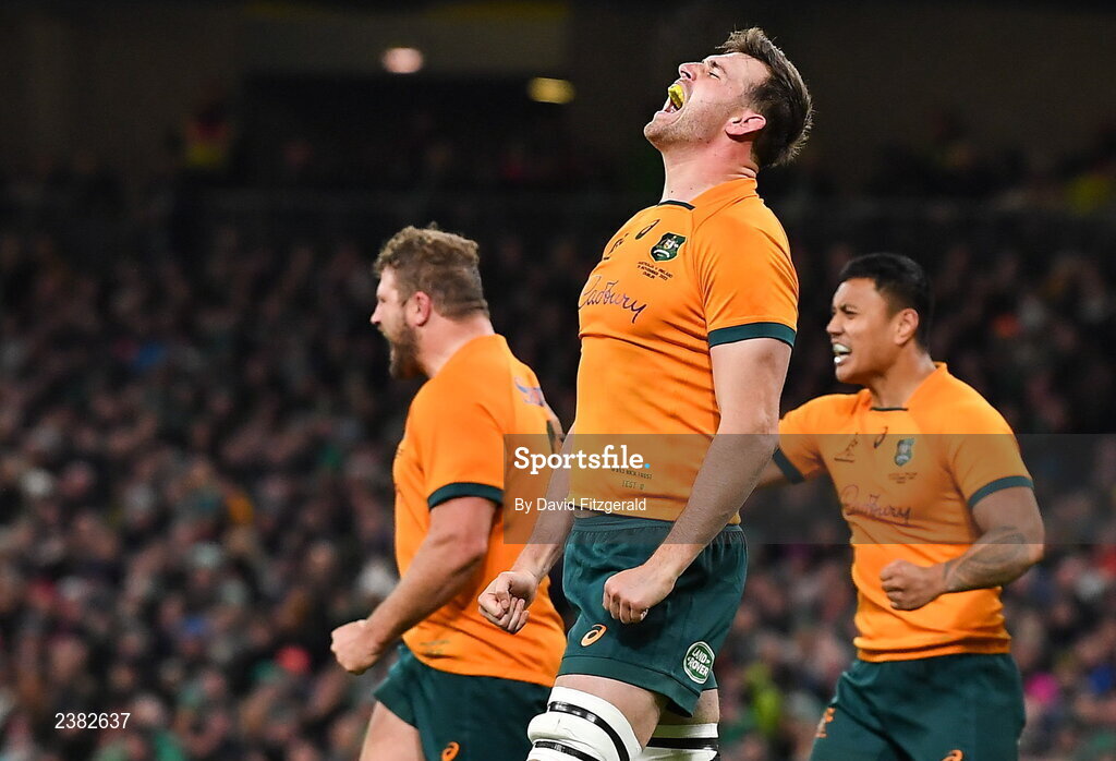 19 November 2022; Nick Frost of Australia celebrates during the Bank of Ireland Nations Series match between Ireland and Australia at the Aviva Stadium in Dublin. Photo by David Fitzgerald/Sportsfile