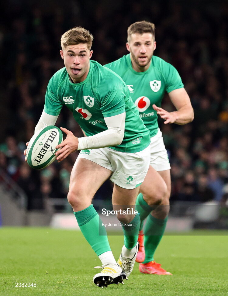 19 November 2022; Jack Crowley of Ireland during the Bank of Ireland Nations Series match between Ireland and Australia at the Aviva Stadium in Dublin. Photo by John Dickson/Sportsfile