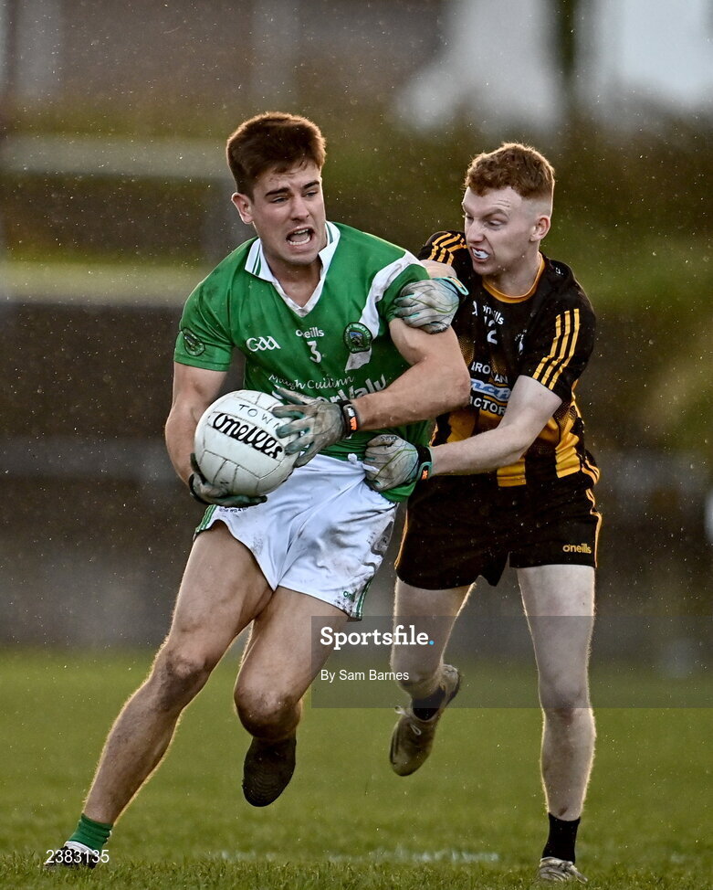 20 November 2022; Sean Kelly of Moycullen in action against Cathal Lavin of Strokestown during the AIB Connacht GAA Football Senior Club Championship Semi-Final match between Moycullen and Strokestown at Tuam Stadium in Tuam, Galway. Photo by Sam Barnes/Sportsfile