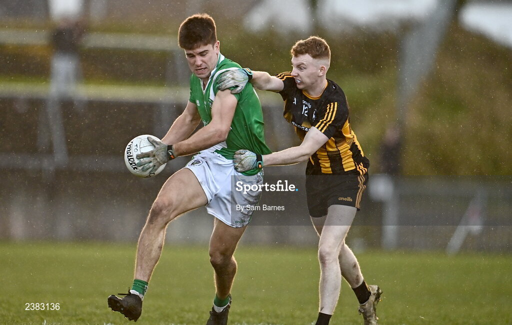 20 November 2022; Sean Kelly of Moycullen in action against Cathal Lavin of Strokestown during the AIB Connacht GAA Football Senior Club Championship Semi-Final match between Moycullen and Strokestown at Tuam Stadium in Tuam, Galway. Photo by Sam Barnes/Sportsfile