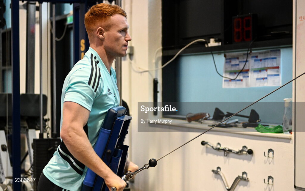 21 November 2022; Ciarán Frawley during a Leinster Rugby gym session at Leinster HQ in Dublin. Photo by Harry Murphy/Sportsfile