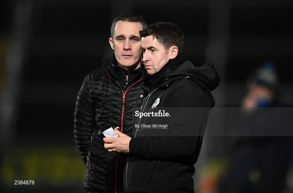 26 November 2022; Kilcoo joint managers Richard Thornton and Conleth Gilligan during the AIB Ulster GAA Football Senior Club Championship Semi-Final match between Enniskillen Gaels and Kilcoo at Athletic Grounds in Armagh. Photo by Oliver McVeigh/Sportsfile
