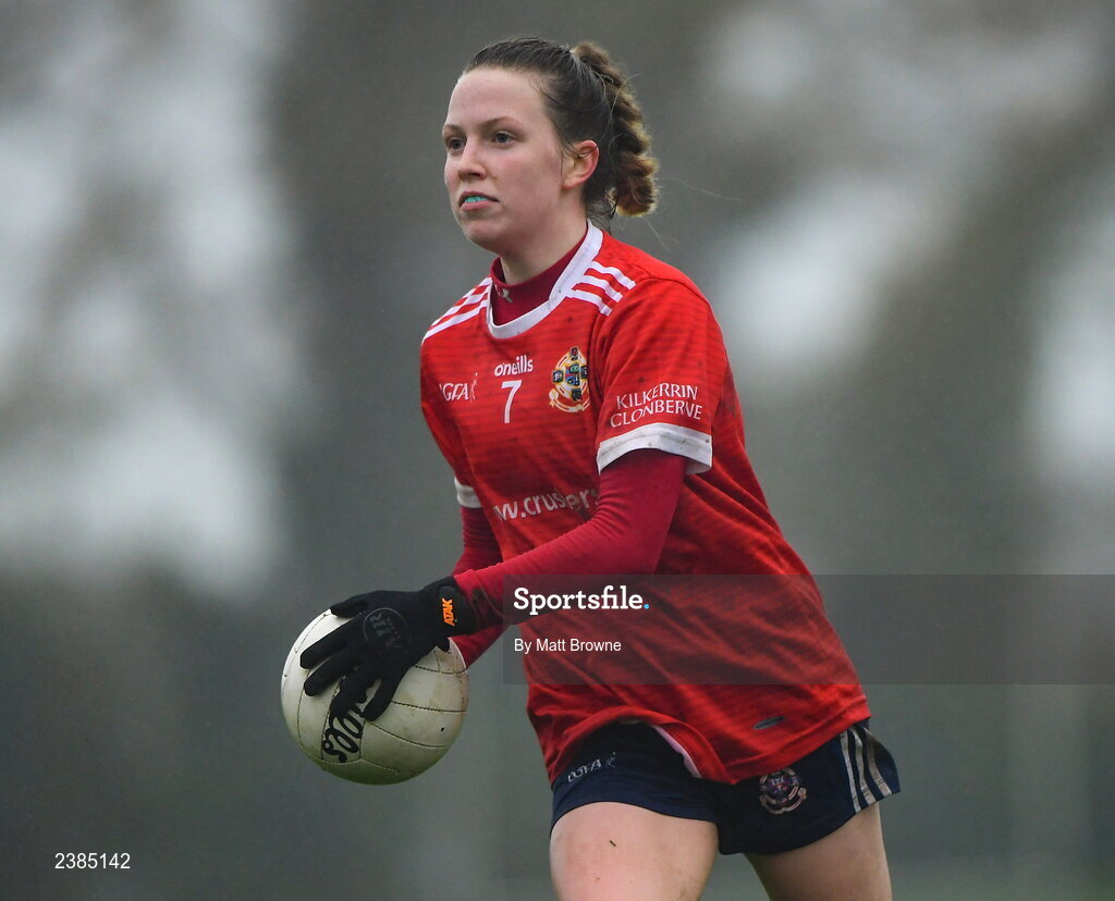 26 November 2022; Hannah Noone of Kilkerrin Clonberne during the CurrentAccount.ie LGFA All-Ireland Senior Club Championship Semi-Final match between Ballymacarbry, Waterford, and Kilkerrin Clonberne, Galway, at Fraher Field in Dungarvan, Waterford. Photo by Matt Browne/Sportsfile