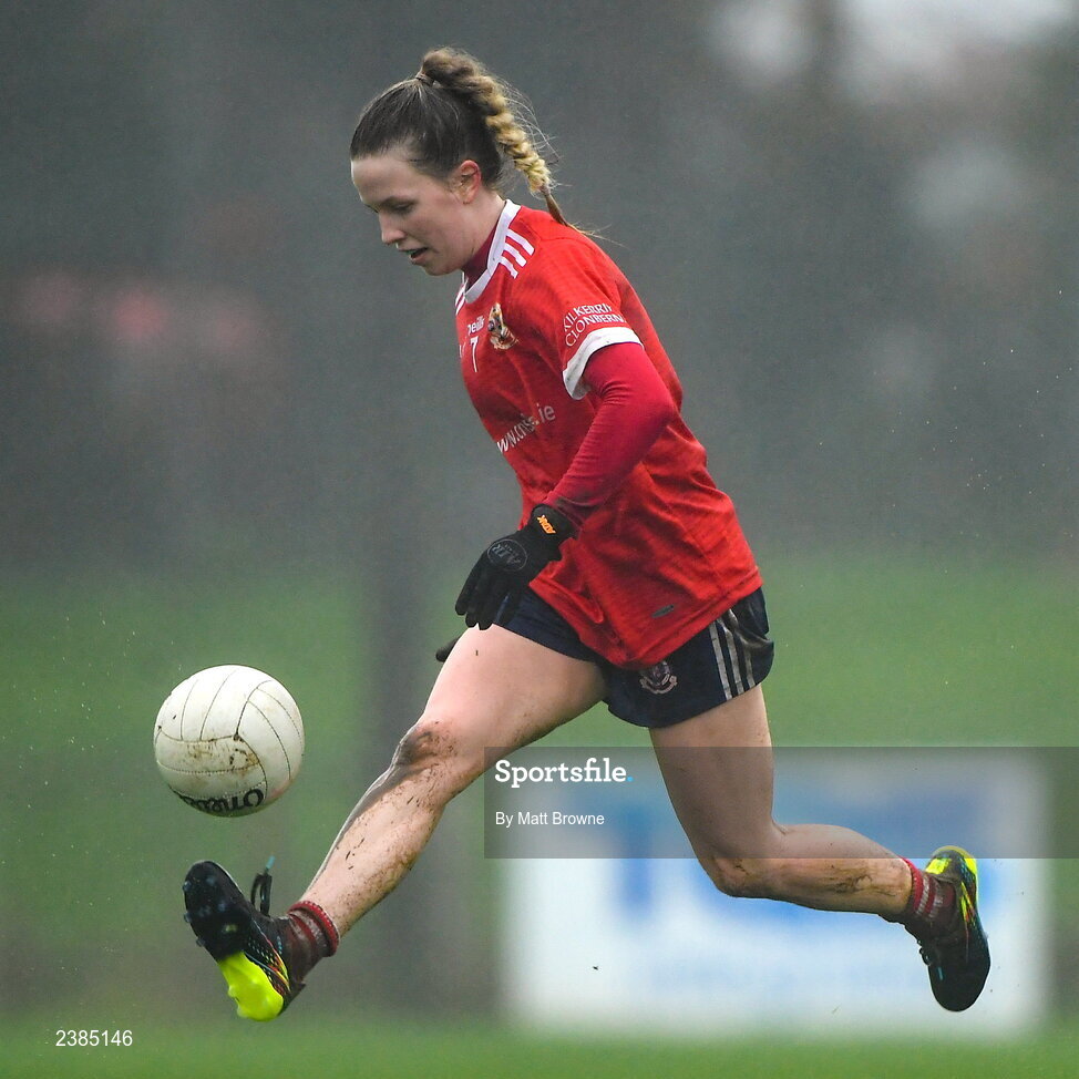 26 November 2022; Hannah Noone of Kilkerrin Clonberne during the CurrentAccount.ie LGFA All-Ireland Senior Club Championship Semi-Final match between Ballymacarbry, Waterford, and Kilkerrin Clonberne, Galway, at Fraher Field in Dungarvan, Waterford. Photo by Matt Browne/Sportsfile