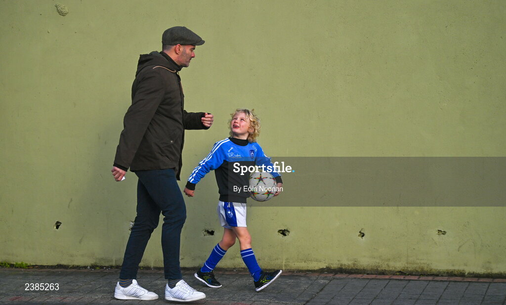 27 November 2022; Barry O'Se and his son Conor, age 6, arrive to Austin Stack Park before the AIB Munster GAA Football Senior Club Championship Semi-Final match between Kerins O’Rahillys and Éire Óg Ennis at Austin Stack Park in Tralee, Kerry. Photo by Eóin Noonan/Sportsfile