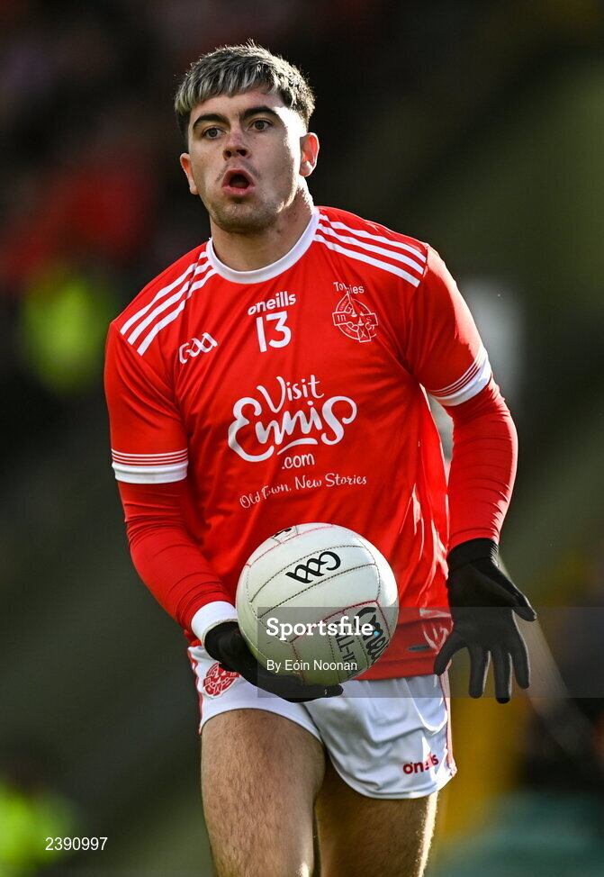 27 November 2022; Philip Talty of Éire Óg Ennis during the AIB Munster GAA Football Senior Club Championship Semi-Final match between Kerins O’Rahillys and Éire Óg Ennis at Austin Stack Park in Tralee, Kerry. Photo by Eóin Noonan/Sportsfile
