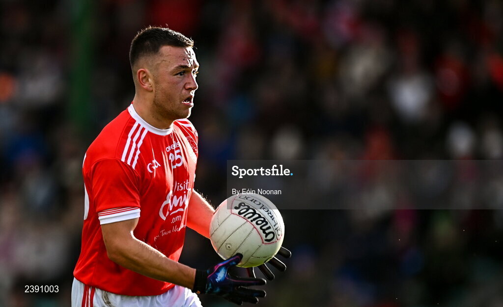 27 November 2022; David Reidy of Éire Óg Ennis during the AIB Munster GAA Football Senior Club Championship Semi-Final match between Kerins O’Rahillys and Éire Óg Ennis at Austin Stack Park in Tralee, Kerry. Photo by Eóin Noonan/Sportsfile