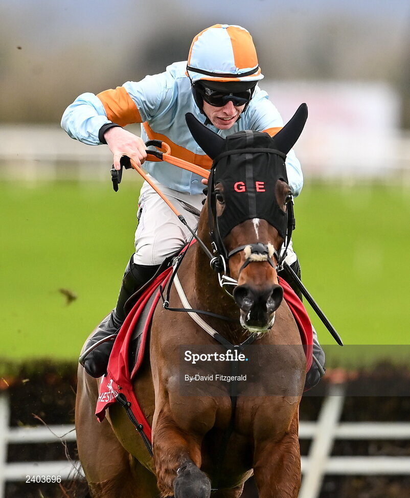 19 December 2022; Itswhatunitesus, with Jack Kennedy up, on their way to winning the Jim Ryan Services Rated Novice Hurdle at Punchestown Racecourse in Naas, Kildare. Photo by David Fitzgerald/Sportsfile